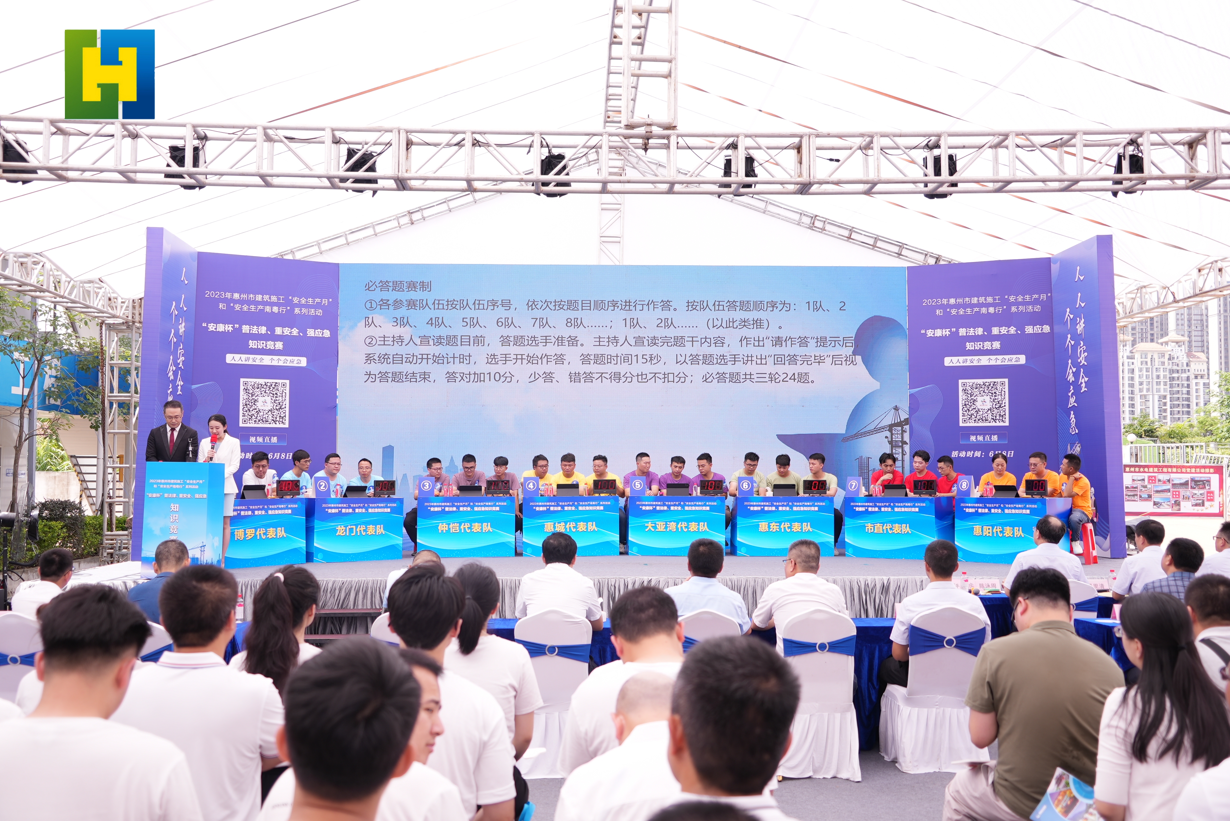 為深入貫徹落實省、市“安全生產(chǎn)月”和“安全生產(chǎn)南粵行”相關(guān)工作要求,進一步夯實我市安全生產(chǎn)基礎(chǔ),6月8日上午,由惠州市住建局主辦,市水電公司承辦的2023年惠州市建筑施工“安康杯”普法律、重安全、強應(yīng)急知識競賽在惠城區(qū)江北管網(wǎng)項目部舉行。市住建局三級調(diào)研員李暢舟,安監(jiān)總站、建筑業(yè)協(xié)會及市水電公司相關(guān)負責(zé)人作為嘉賓參加了本次活動。本次活動全程現(xiàn)場直播,觀看人次達20萬。